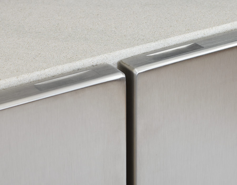 Korpus: Möbelplatte, furniert, mit Bekleidung (abnehmbar) aus Naturstein (geschliffen) Türen: Edelstahl, geschliffen