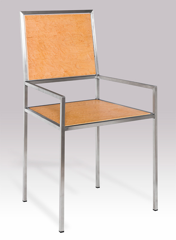 Gestell: Edelstahl, geschliffen Sitzfläche und Lehne: Möbelplatte furniert